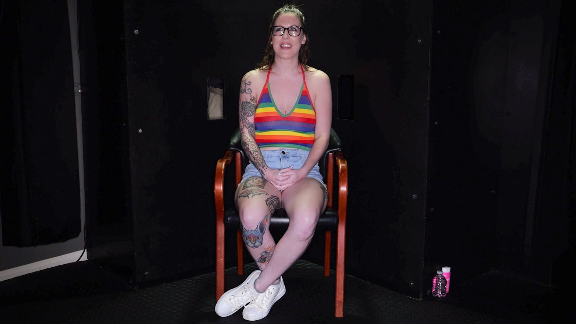 Nikki Zee is back at Gloryhole Secrets and is ready to suck more cocks through our Gloryholes. She is beautifully tatted all over and is sexy in her colorful top & glasses. She talks about her online persona and love for online games. She told us about her cocky encounter with a huge cock and had a coughing fit that ended with embarrassment. As she gets her tits felt up, she tells a second cocksucking story where cum shot out of her nose after sucking a dick in bed. She's fun and playful and back for a second Gloryhole. Enjoy Nikki Zee on her second visit to Gloryhole Secrets.